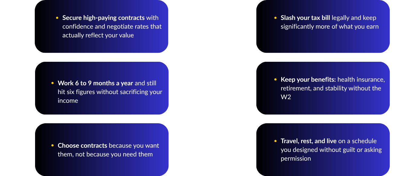 That was 2019. Since then I've contracted in New York, DC, California, and Washington. I've stacked locums, direct contracts, and remote telehealth work, I am now licensed in 10+ states. I've built a system that lets me choose when I work, what I take, and when I walk away.