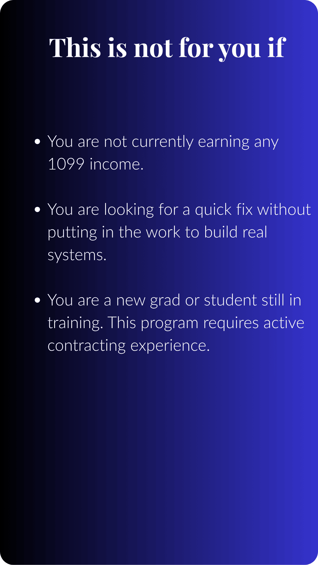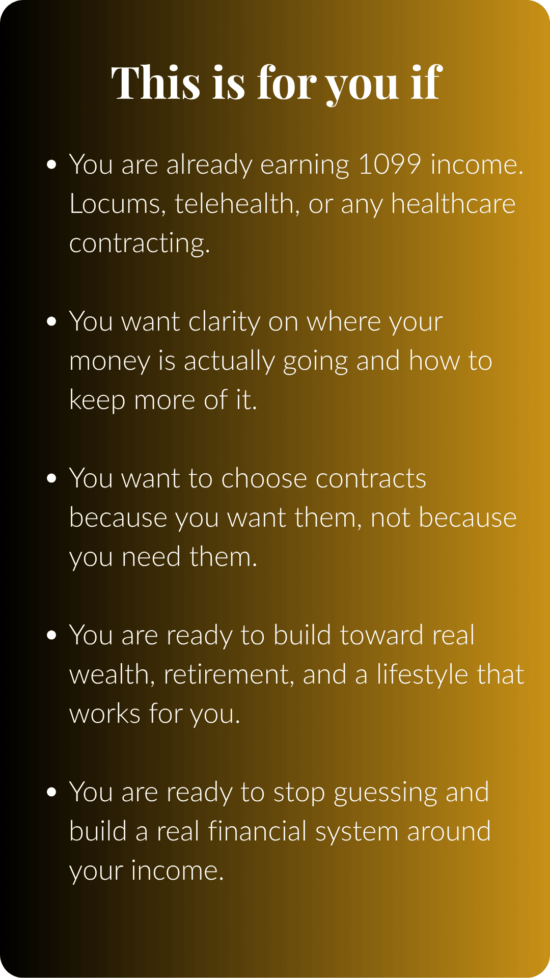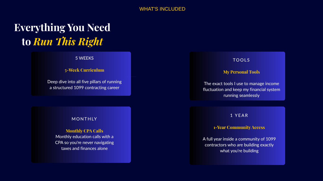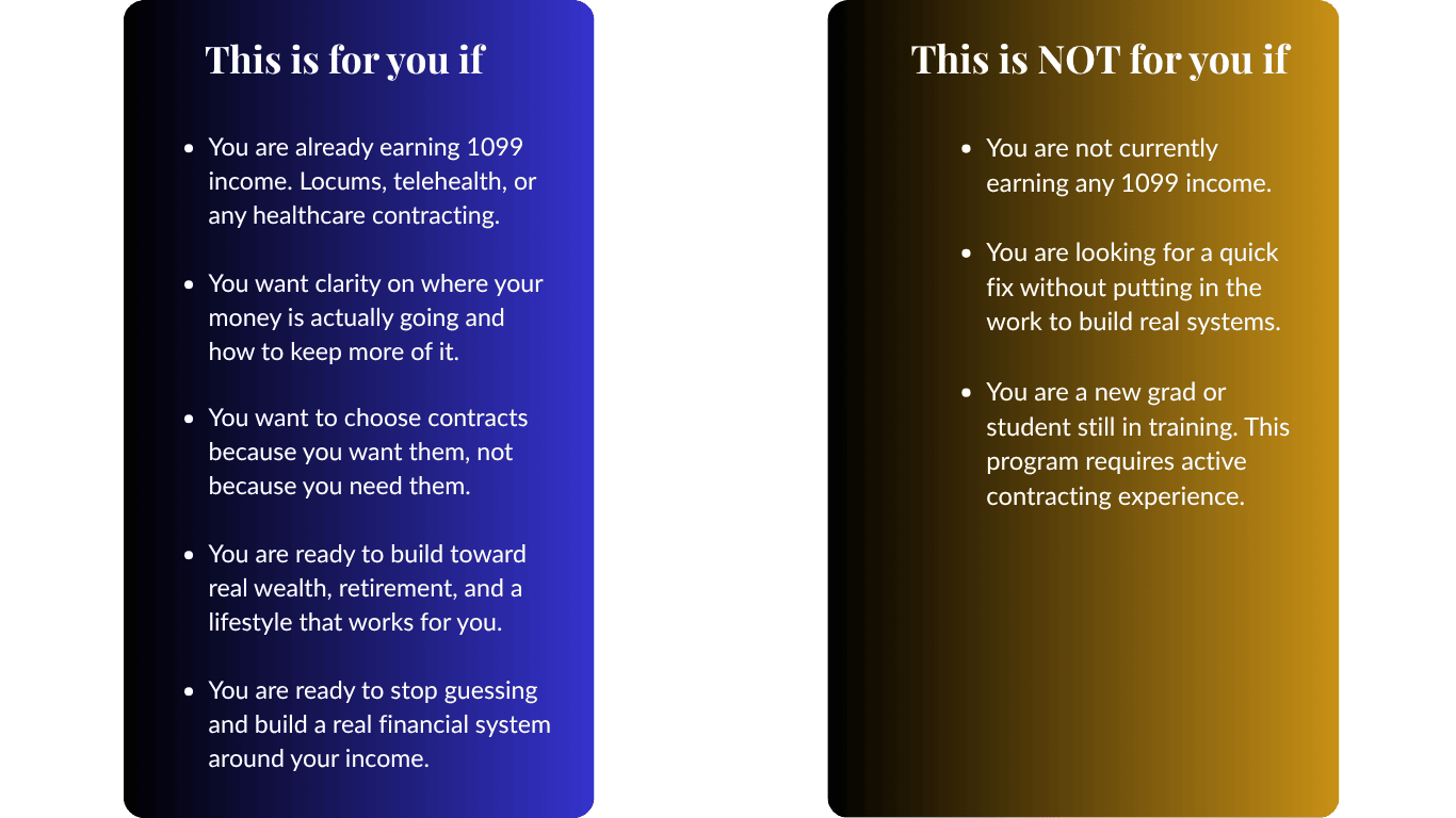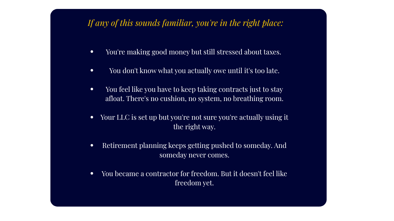 You made the move to 1099 contracting. The income went up. But somehow the money still feels disorganized. Taxes are confusing, you're not sure what you're actually keeping, and the financial freedom you pictured? It still feels just out of reach.